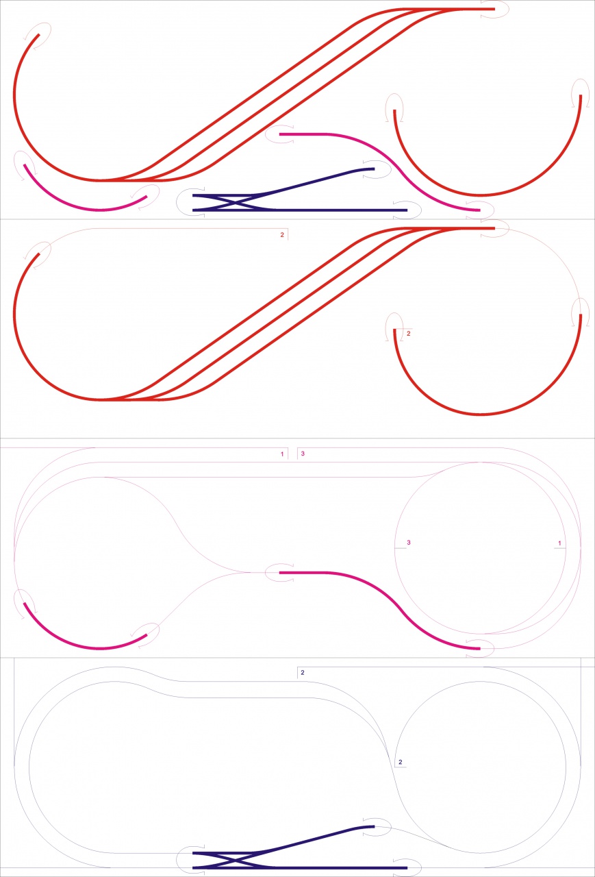 Látom a rajzodon R1-es íveket is használsz. Ezt jól gondold meg, mivel üzembiztonság és látvány szempontjából is necces. Én az R2 íveket csak rejtett helyeken használtam. Alapvetően R3-R4-ből áll a pálya.