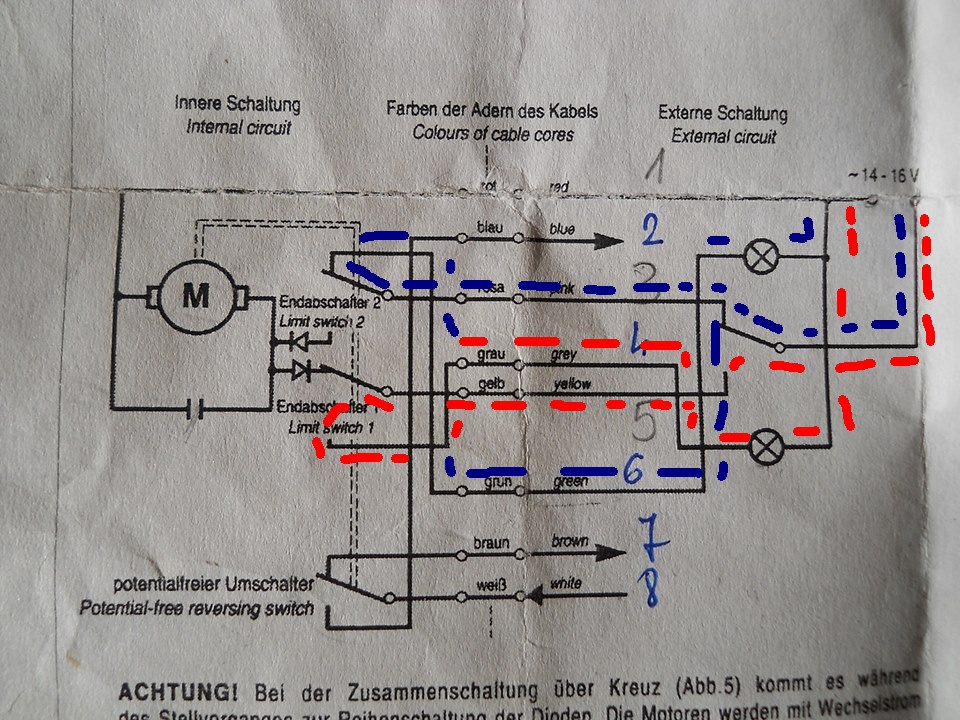 Ami viszont ennek az áramkörnek a hibája lehet (bár nem ismerem a váltómotor lelkivilágát), hogy a felhasznált ("diódás") kontaktust a végállásban szakítja meg. Vagyis mozgás alatt (két állapot között) mindkét LED világít.