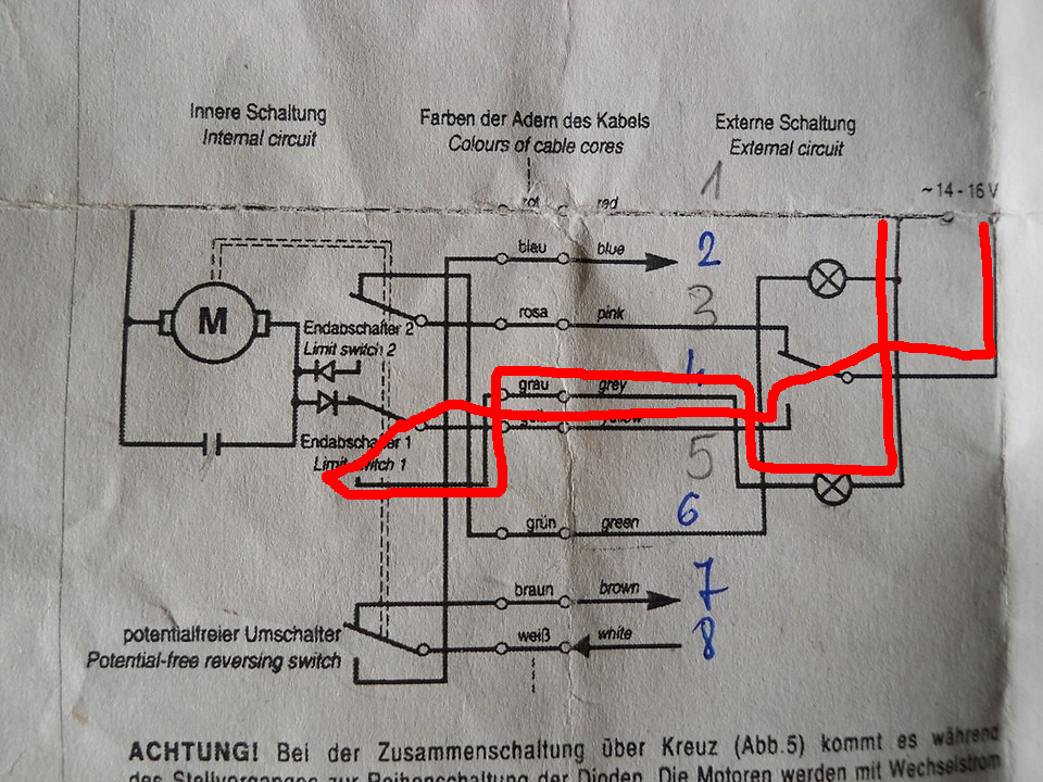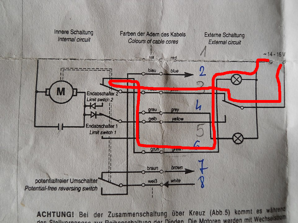 Ebböl az következik, hogy rajz szerinti állásban az 5. lábra kötött izzo fog világitani, és ezt az izzot rövidrezárva elindul a motor az ellenkezö irányba, amint eléri a másik végállás felgyullad a 3. lábra kötött izzo és készenlétbe kerül a motor a visszaváltásra.