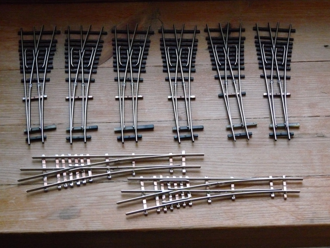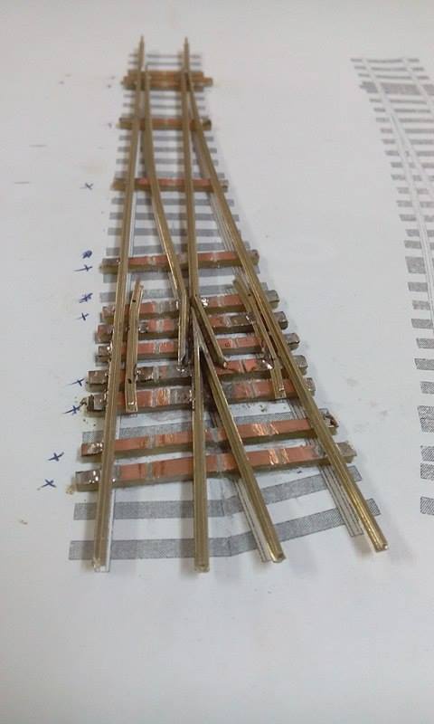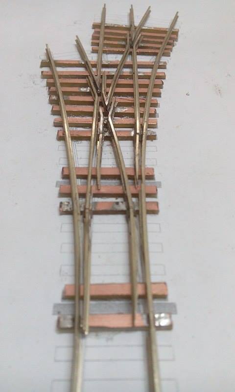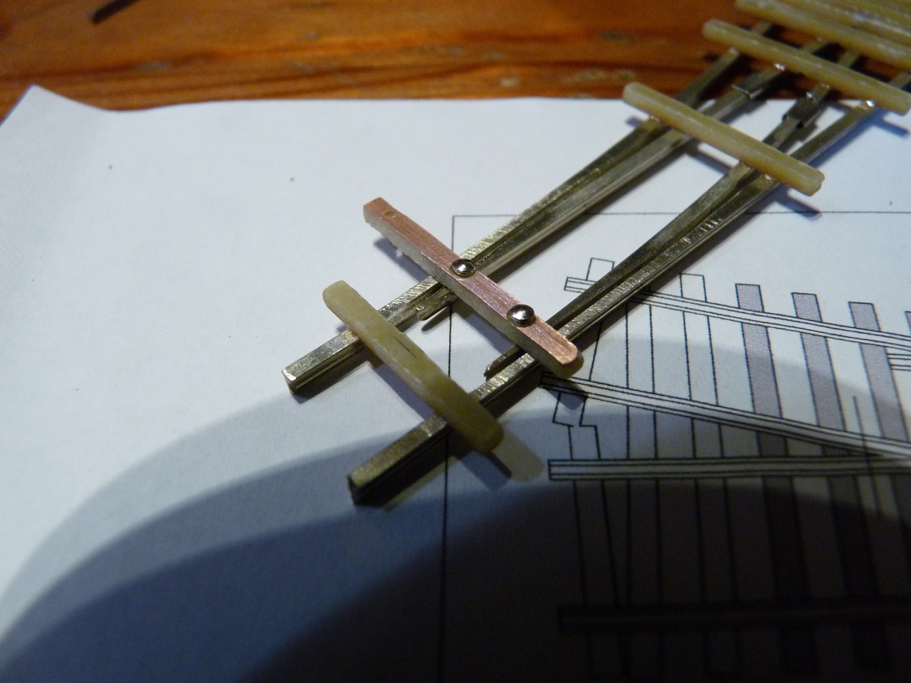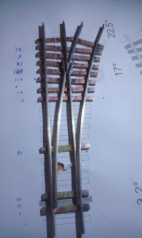 Én is felteszek pár képet a készülő váltóimról. A képeken látszik, hogy én milyen sablont használok. Textilbakelit lapba vannak 2mm-es csapágygörgők belefúrva, így gyerekjáték a nyomtáv és geometria helyes tartása. Én is feltennék egy kérdést az angolos képemmel kapcsolatban. Hogyan tudnám kicsit növelni a két belső csúcssín közötti távolságot? Egyébként N méretarányban építek.