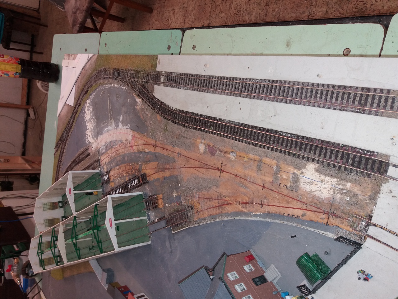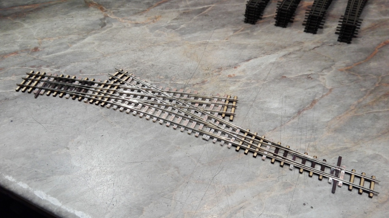 Ez valóban egészen más, mert ami a képen van, az egy H0m angolváltó, aminek az egyik ívében van egy H0 szakasz is, amit én építek, az pedig egy fonódott szakaszból induló jobbos kiágazás, amiből szemben van egy szintén jobbos kiágazás, ami átszeli a fonódott szakaszt. |