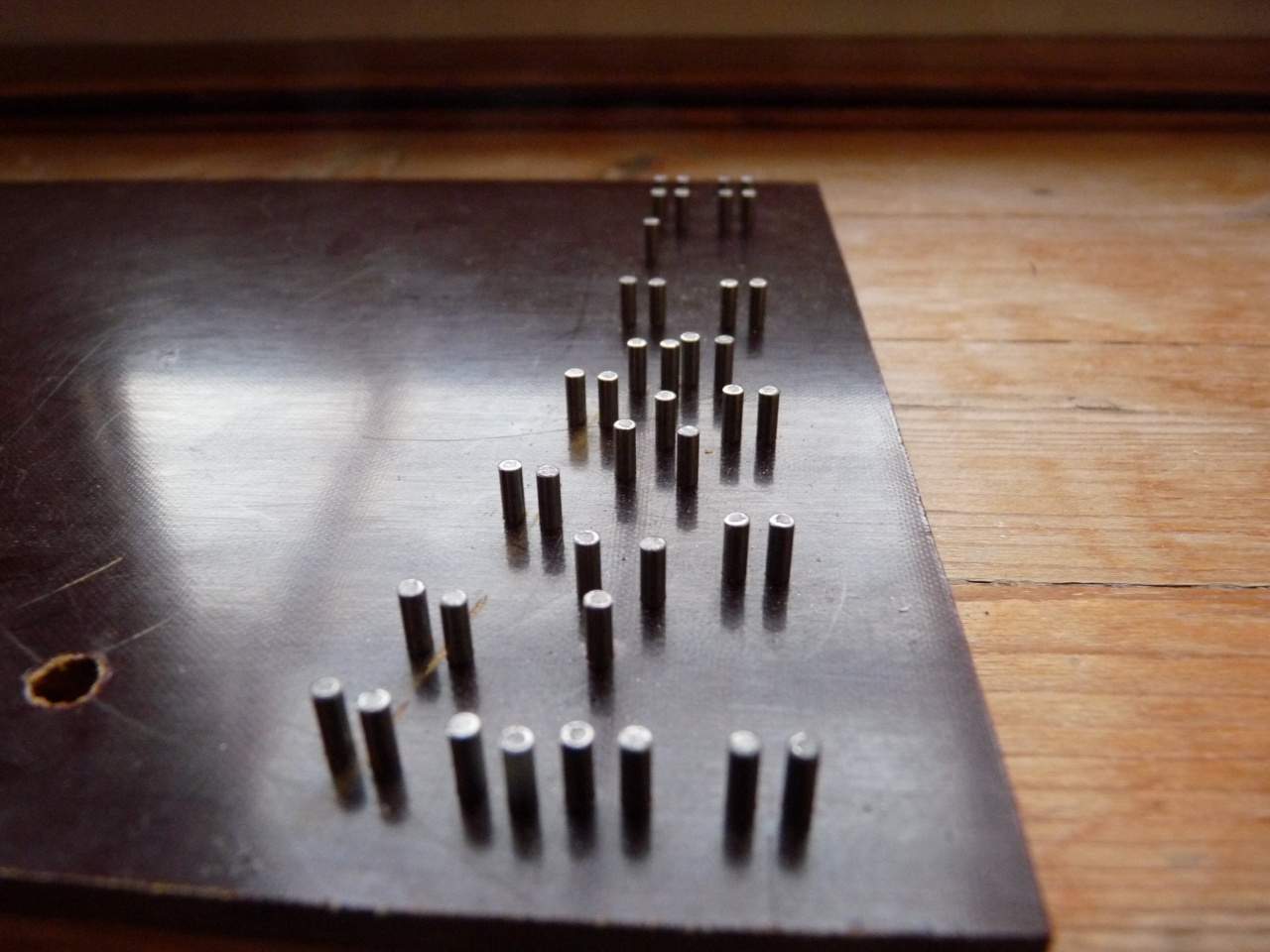 Modellező boltokban kapható kemény rézhuzal, én 0,8mm vastagot használtam sokáig. Mostanság 0,3mm-es rézlemezből vágok ~0,8mm vastag csíkokat, T alakot formázok belőle, odaforrasztom, majd alul elvágom, és szétnyitom. Ez sajnos elég nehezen kivitelezhető házilag, ha nincs speckó szerszámod ilyen vékony csík vágására. |
