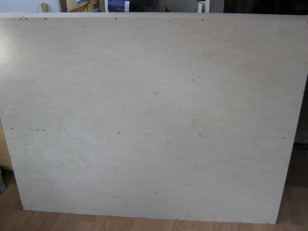 Mint említettem, az asztal 130*100cm-es, az alaplap 6mm-es rétegelt lemezből van. A merevító keret 10mm-es rétegelt lemezből, 10cm magas. Ez több a megszokottnál, de később látni fogjuk, hogy miért! Egyelőre annyit erről, hogy nem szeretnék beleesni a "lapos lemez" hibájába. A merevítés csavarozva, és ragasztva van, nem higított faragasztóval. Talán nem kellene írnom, de a csavarok helyét az alaplapon kifúrtam, sima önmetsző csavarokat használtam. A merevítésbe meg előfúrtam 2mm-es fúróval, hogy véletlenül se feszítse szét a húzás a rétegelt lemezt. |