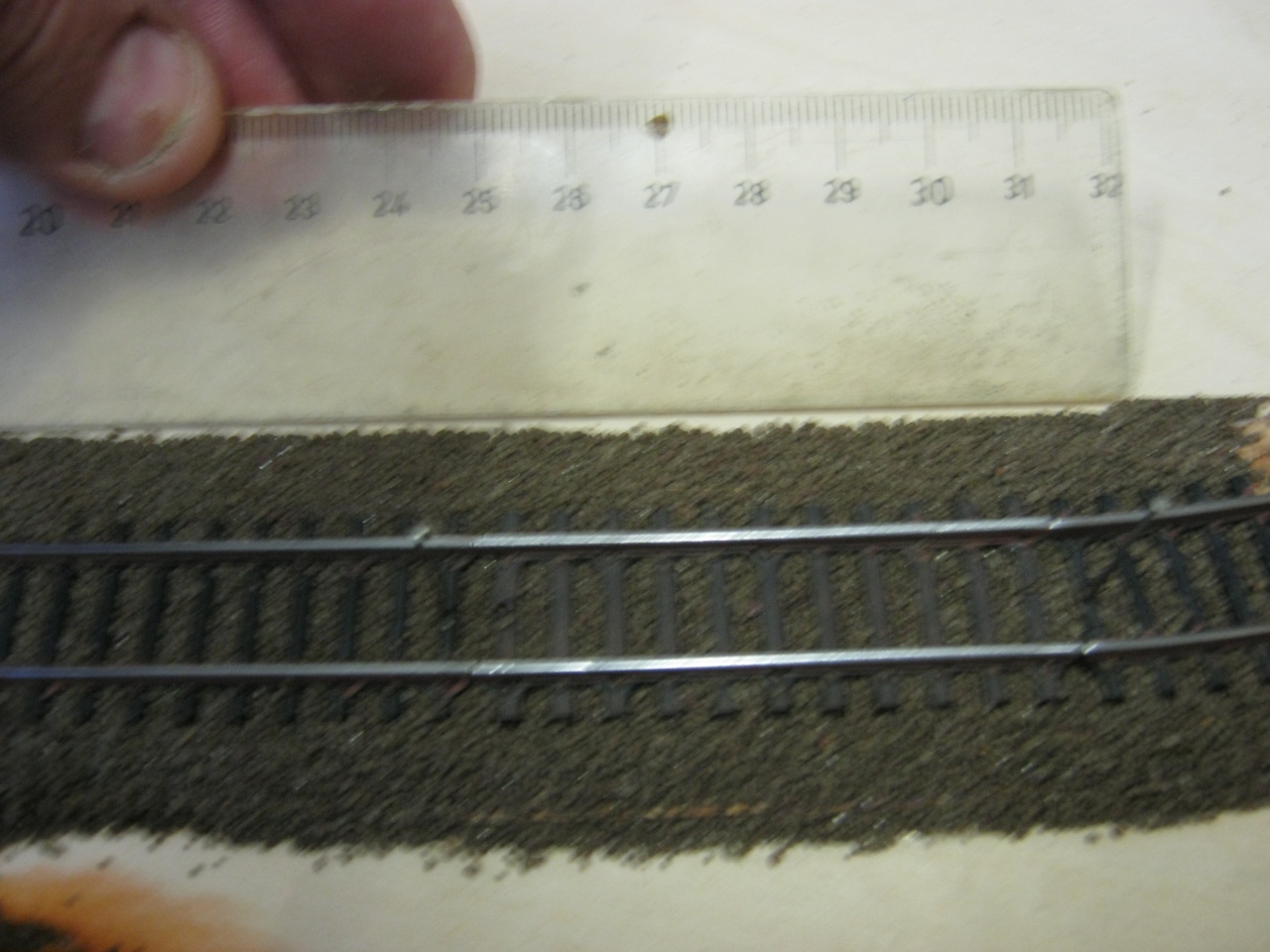 A sínek alá a parafa az 2mm vastag tekercsből lett vágva. Két részből, mert TT méretben 4mm az ágyazat magasság az alaplemez szintjétől. Az alsó réteg az 34mm széles, erre jön majd a második, az 28mm lesz. Kottából dolgoztam a méreteket Gerhard Trost: Modellvasút című könyvéből veTTem.