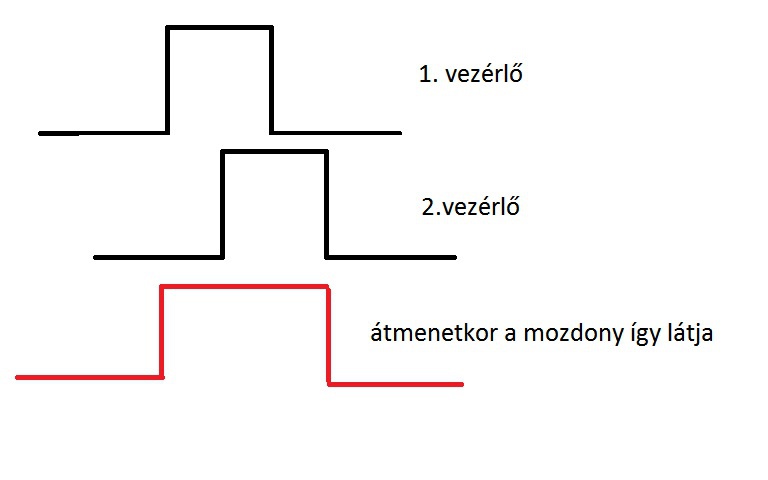 Szlogan kolléga rajzán tehát nem az összeg kerül a motorra (a piros jel) hanem a különbség kerülne oda, azaz csak az az idö amikor mind a 2 fekete jel fent van. |