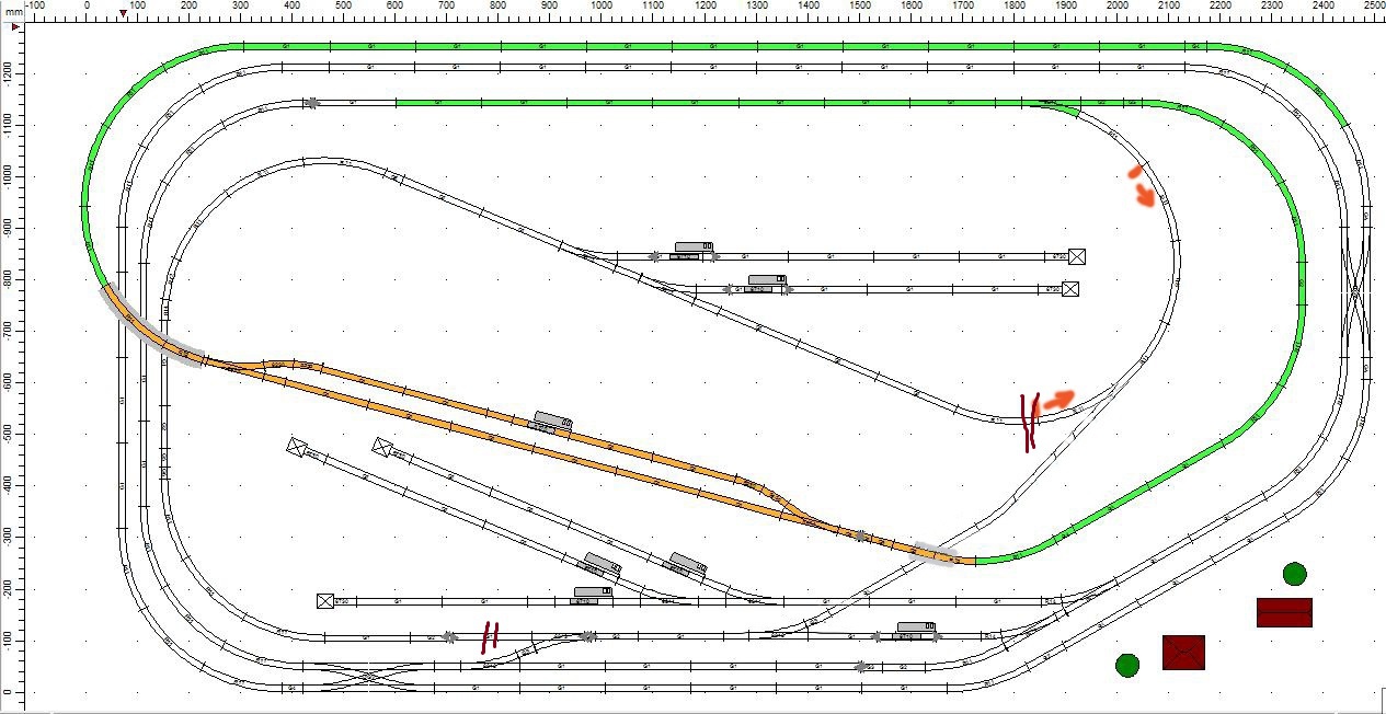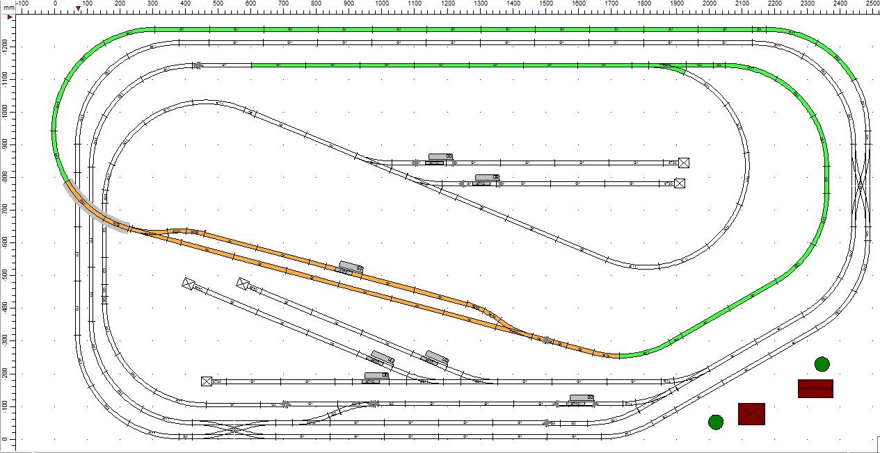Igen, egy hurok modul kell a 2. képen látható tervhez. Én a bal oldalon található, a belső kör kiágazó váltója mögött, és a híd előtt szakaszolnám le.