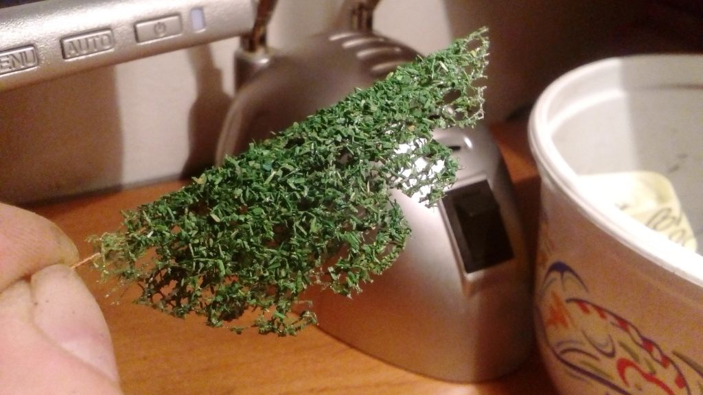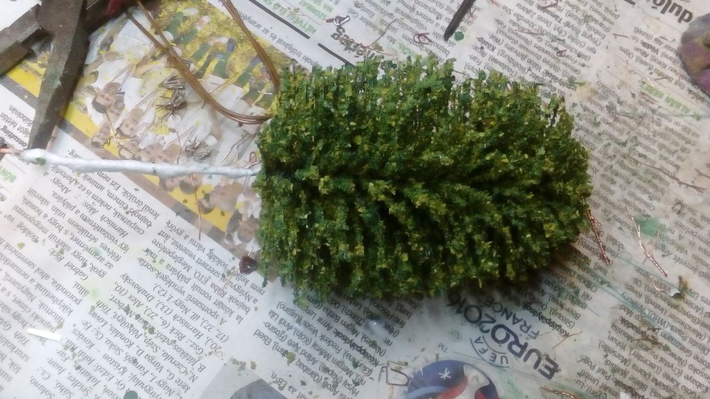 Az "üvegmosó kefe" az alap test hisz valamire fel kell tennem a szóró anyagot. De lehet készítek egy fotosorozatot a teljes elkészítésről, bár a betett linken lévő videokon a teljes készítés folyamat látható. A törzseket még alap fa ragasztó+ 0,5mm akvárium homok szisztémával csináltam, de már készűl a folyékonyfás verzió is. Egyébként maga az üvegmosó test elkészítésére nagyon rá kell érezni mert nem egyszerű, a szálak mennének minden felé a tekeréskor.