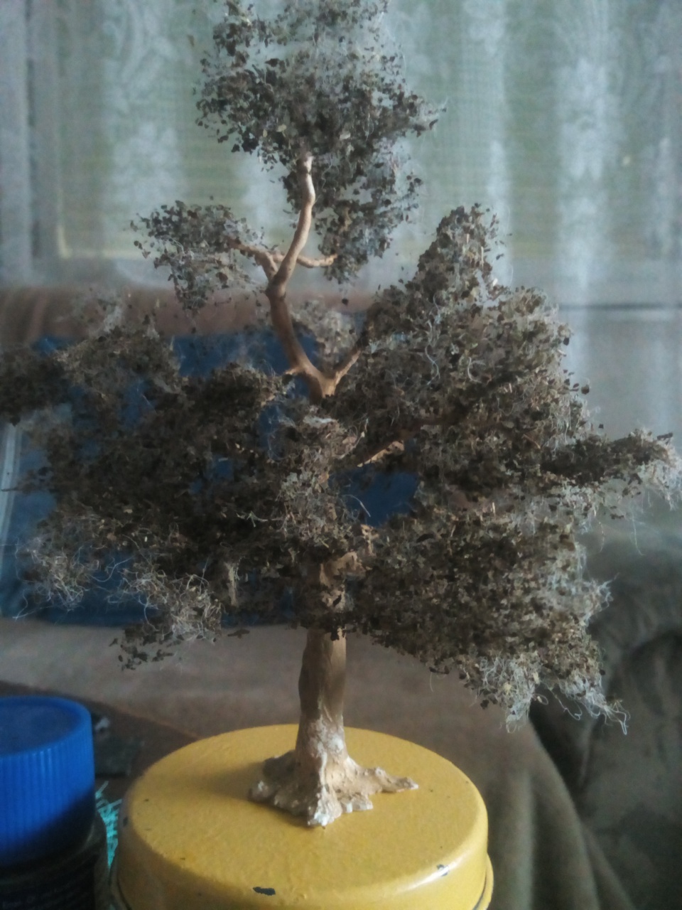 Az "üvegmosó kefe" az alap test hisz valamire fel kell tennem a szóró anyagot. De lehet készítek egy fotosorozatot a teljes elkészítésről, bár a betett linken lévő videokon a teljes készítés folyamat látható. A törzseket még alap fa ragasztó+ 0,5mm akvárium homok szisztémával csináltam, de már készűl a folyékonyfás verzió is. Egyébként maga az üvegmosó test elkészítésére nagyon rá kell érezni mert nem egyszerű, a szálak mennének minden felé a tekeréskor.