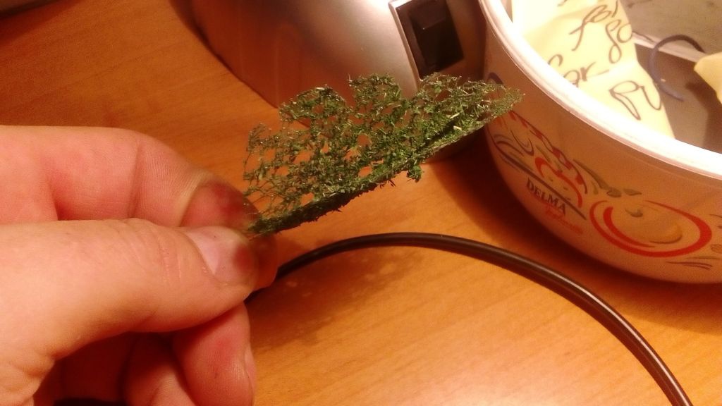Az "üvegmosó kefe" az alap test hisz valamire fel kell tennem a szóró anyagot. De lehet készítek egy fotosorozatot a teljes elkészítésről, bár a betett linken lévő videokon a teljes készítés folyamat látható. A törzseket még alap fa ragasztó+ 0,5mm akvárium homok szisztémával csináltam, de már készűl a folyékonyfás verzió is. Egyébként maga az üvegmosó test elkészítésére nagyon rá kell érezni mert nem egyszerű, a szálak mennének minden felé a tekeréskor.