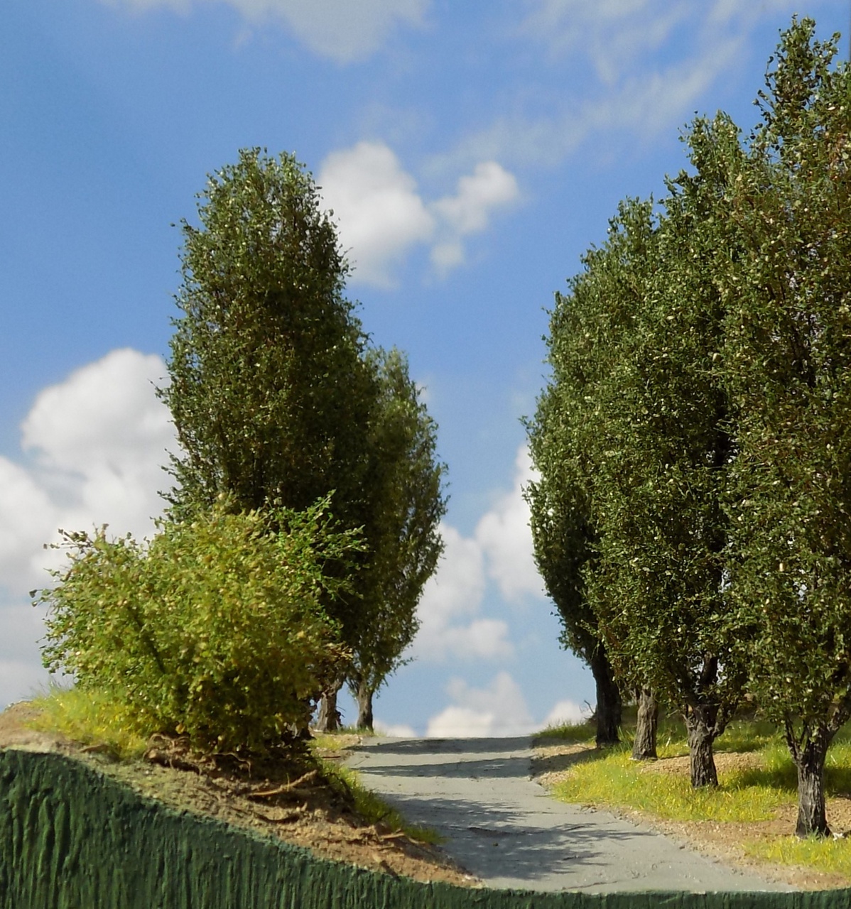 Köszönöm, igyekszem  Bár ahogy elnézem a már szikkadt moha sárgásabb, nem ennyire élénk, de kezdetnek jó ez a zöld is, majd keverek mellé egy kis festéket, amivel megspékelem. Egyébként ez ha jól emlékszem Heki szóróanyag, és mivel elég apróra vágható, szépen mutat a fákon. |