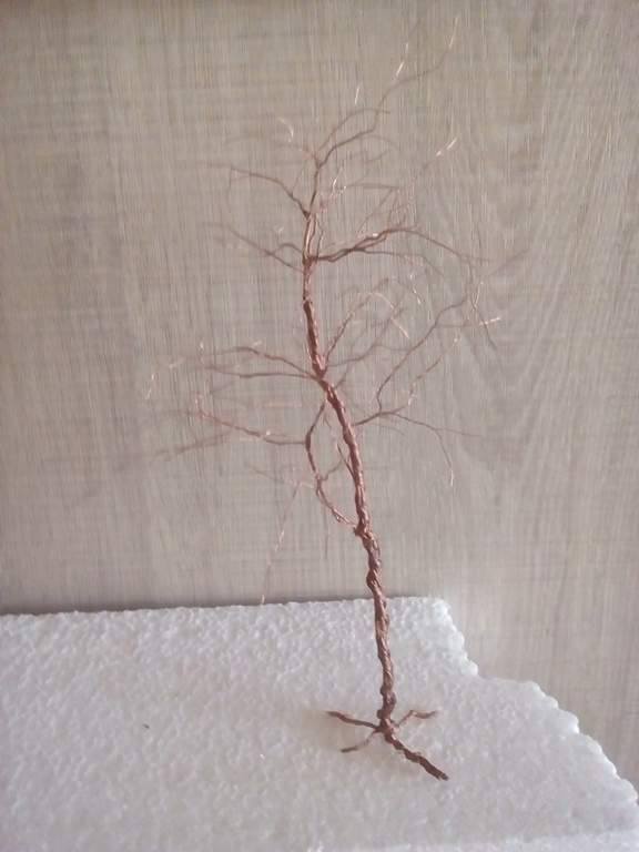 Most egy G méretű nyírfácskának kell neki állnom kb 35-40 cm magas lesz. Kb 100 db 0,5-os sr réz elemi szálból kell tekergetnem. Ezért már a méhben is jó árat adnának  |