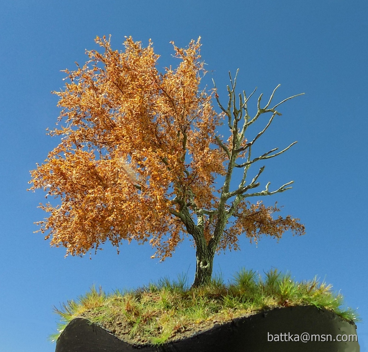 Nemrég kapott némi lombot az újabb módszerrel kreált fenyő, talán egy lépcsővel közelebb kerültem vele a megoldáshoz. A lomb anyaga is saját, és egész jól vizsgázott. A későbbiek során valószínűleg még ezen is lesz némi módosítás. És amíg ezen agyalok hajtogattam egy nyárfa alapot is, mert kell a változatosság. |