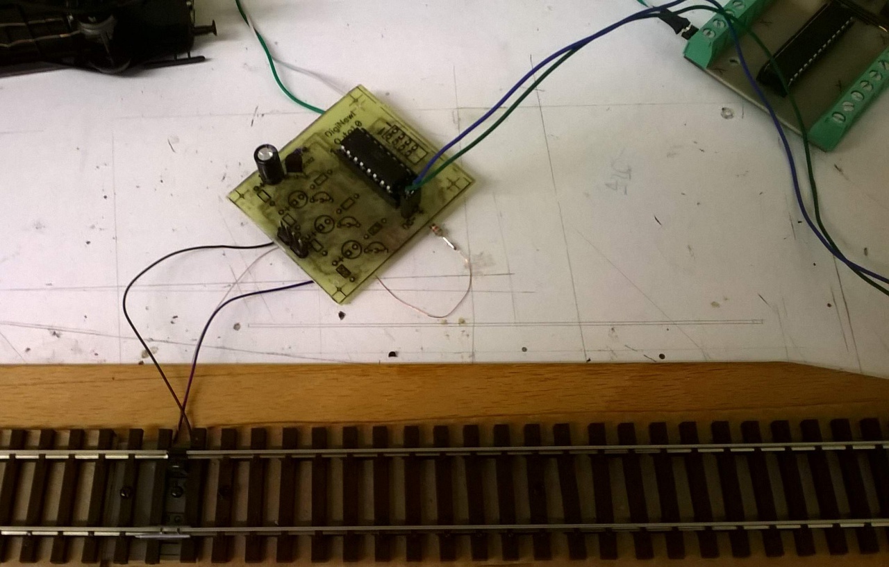 Itt pedig egy csatorna beforrasztva, és összekötve egy s88-as modullal.