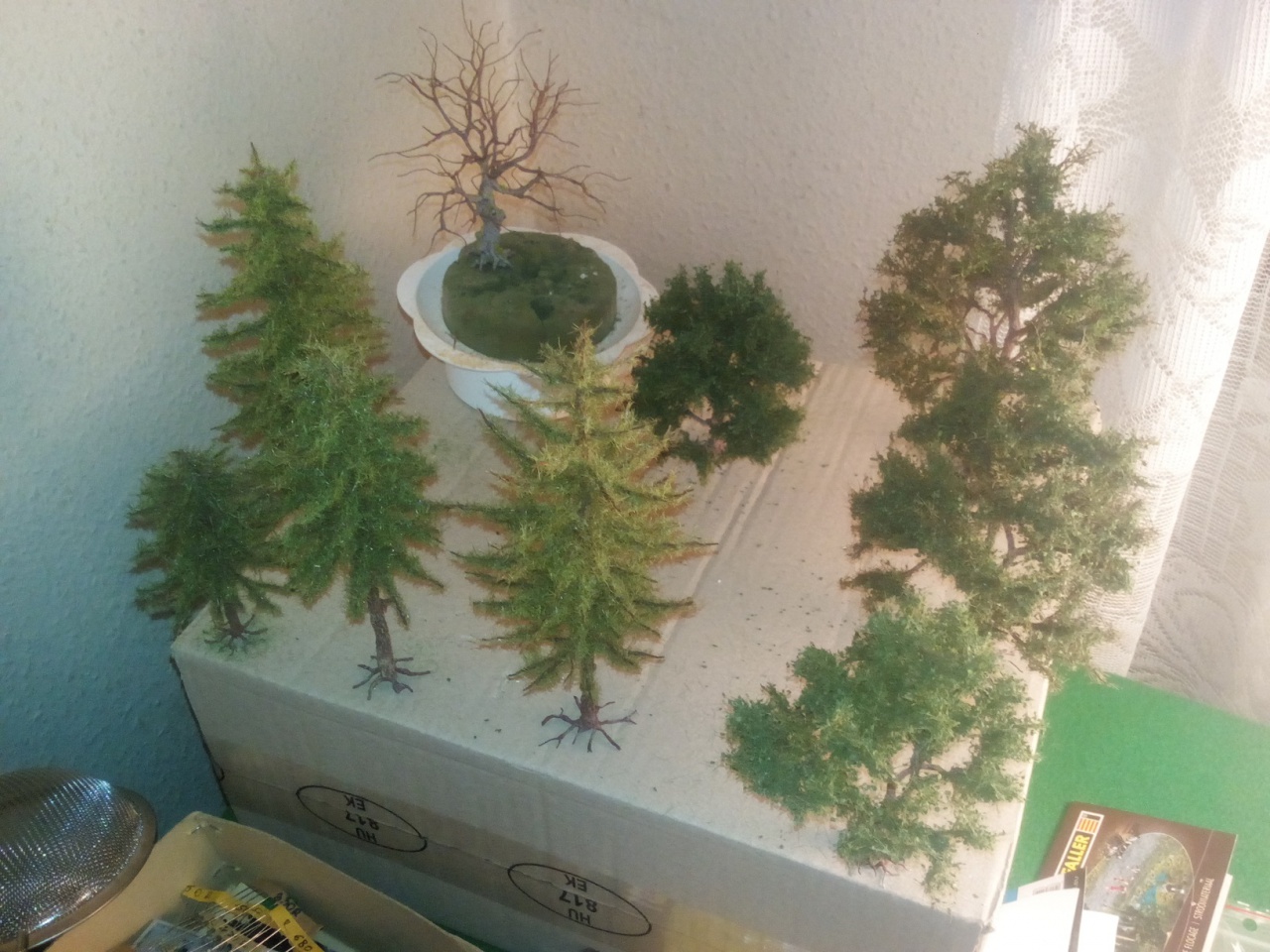 Amíg ezeken agyalok, addig elkészült pár nyírfa-alap, melyek nemsokára megkapják a lombot is.