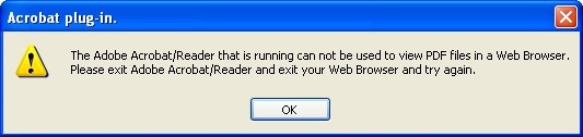 Az alábbi hiba üzenetet kapom ha PDF anyagot akarok webes felületen megnyitni, mit lehet tenni?