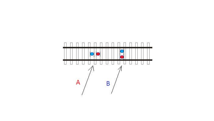 Az újabb gyrtmányú ROCO mozdonyok alján alufóliás cimkén van a gyáriszam, a javasolandó "B" megoldás - párhuzamos elrendezés két talpfa között - még erre a cimkére is reagál.