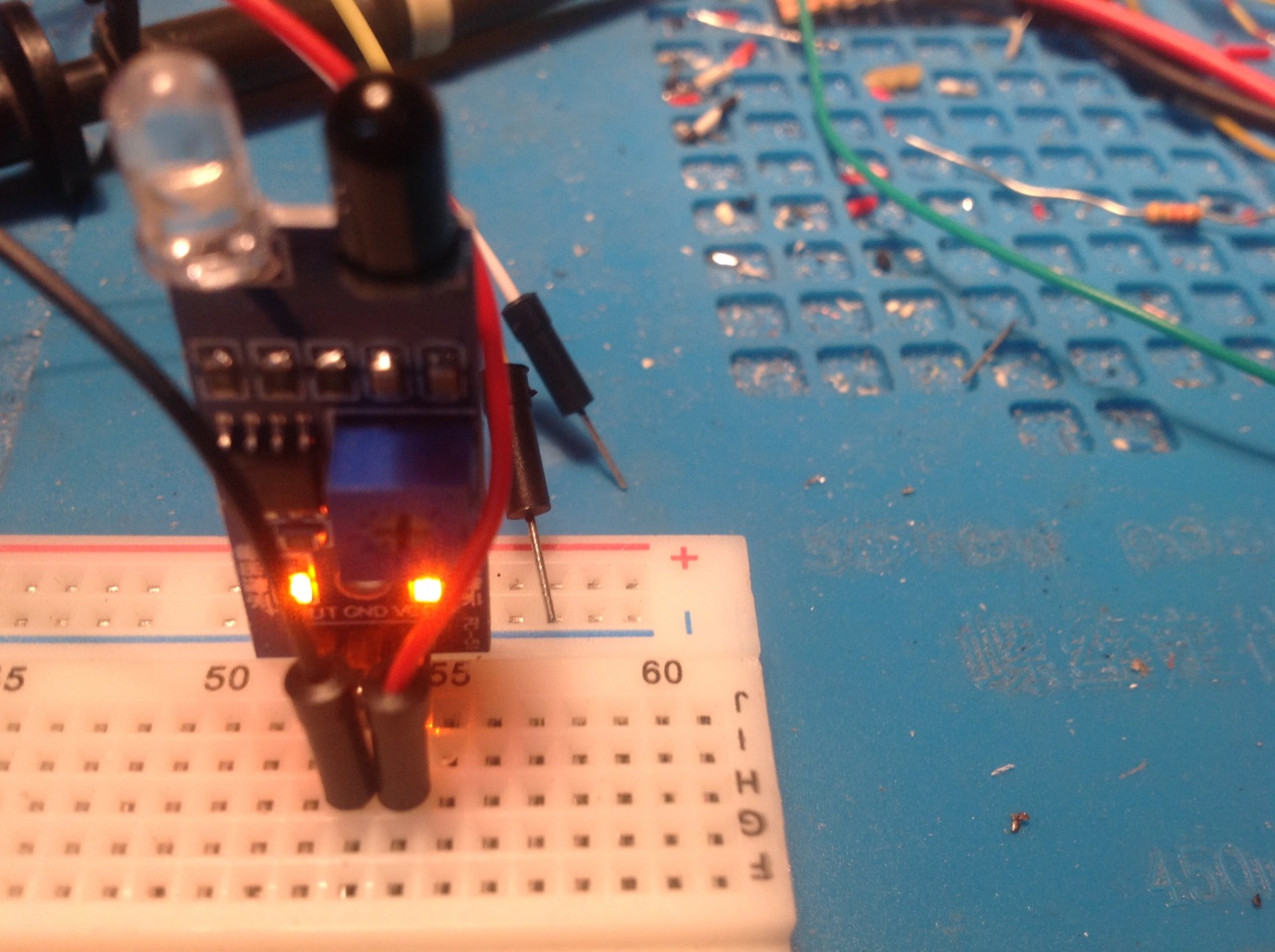 Az elsö képen az IR kapu aktiv állapota van - mindkét LED világit, azaz ott van a tükör a fény elött. Ilyenkor a kimenet 0V.