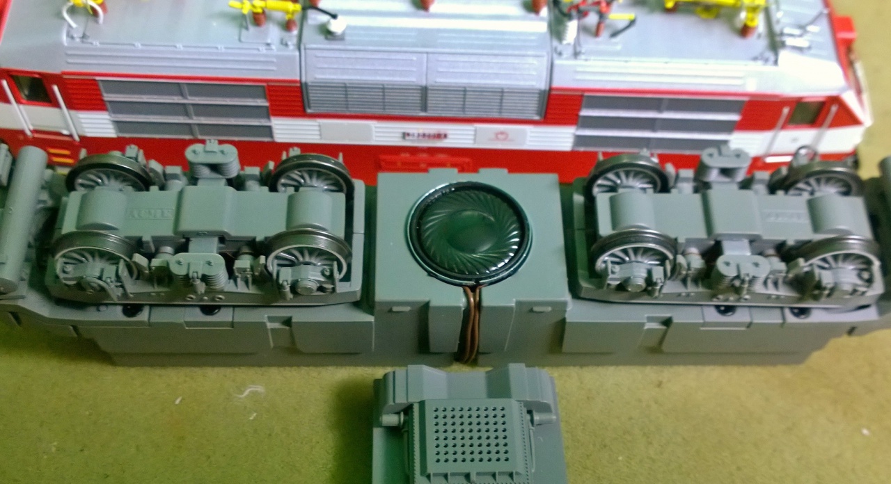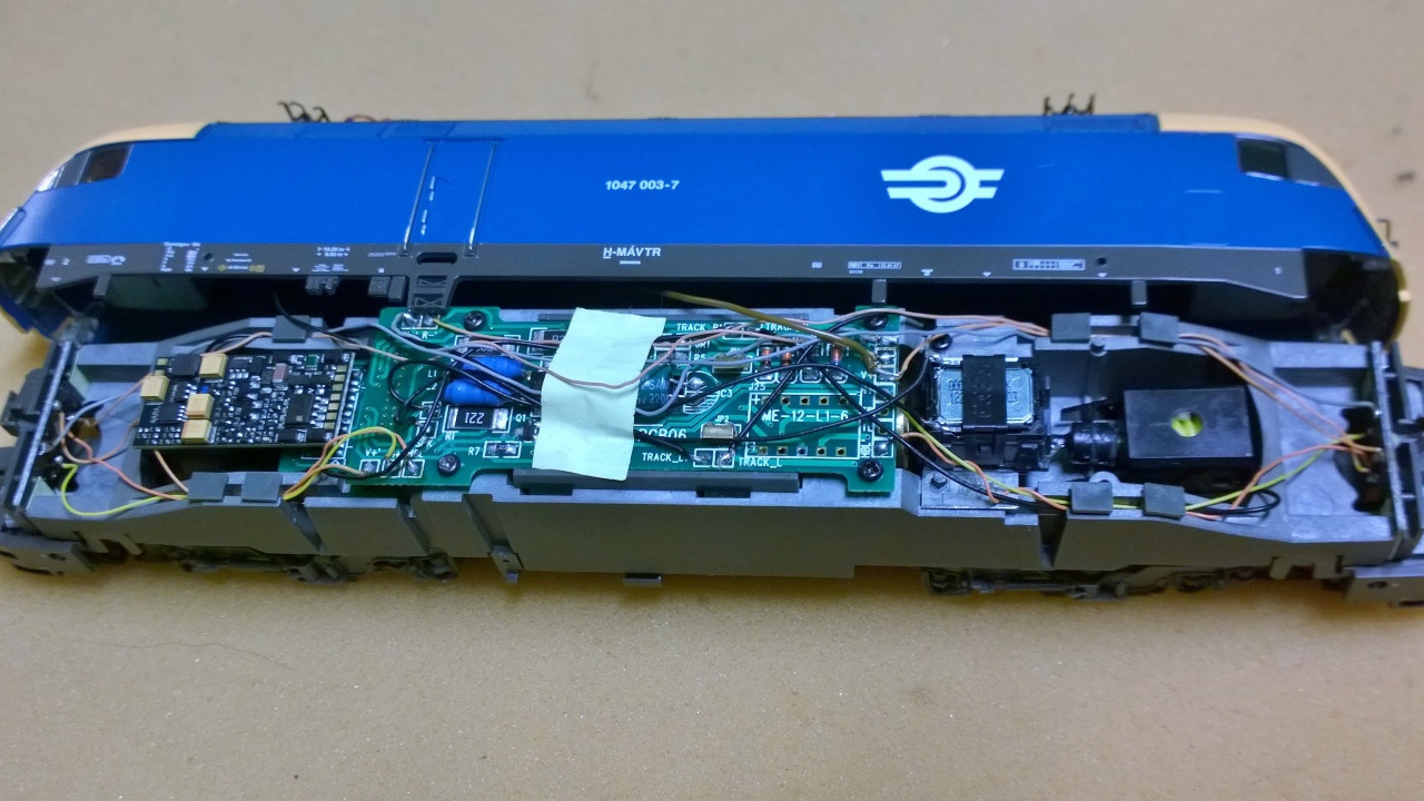 ESU loksound micro van benne. Azt nem nagy kunszt belerakni. A "motortér" alatt nem sok hely van hangszórónak. Mindegy hova teszed, csak ne a képen látható módon... |