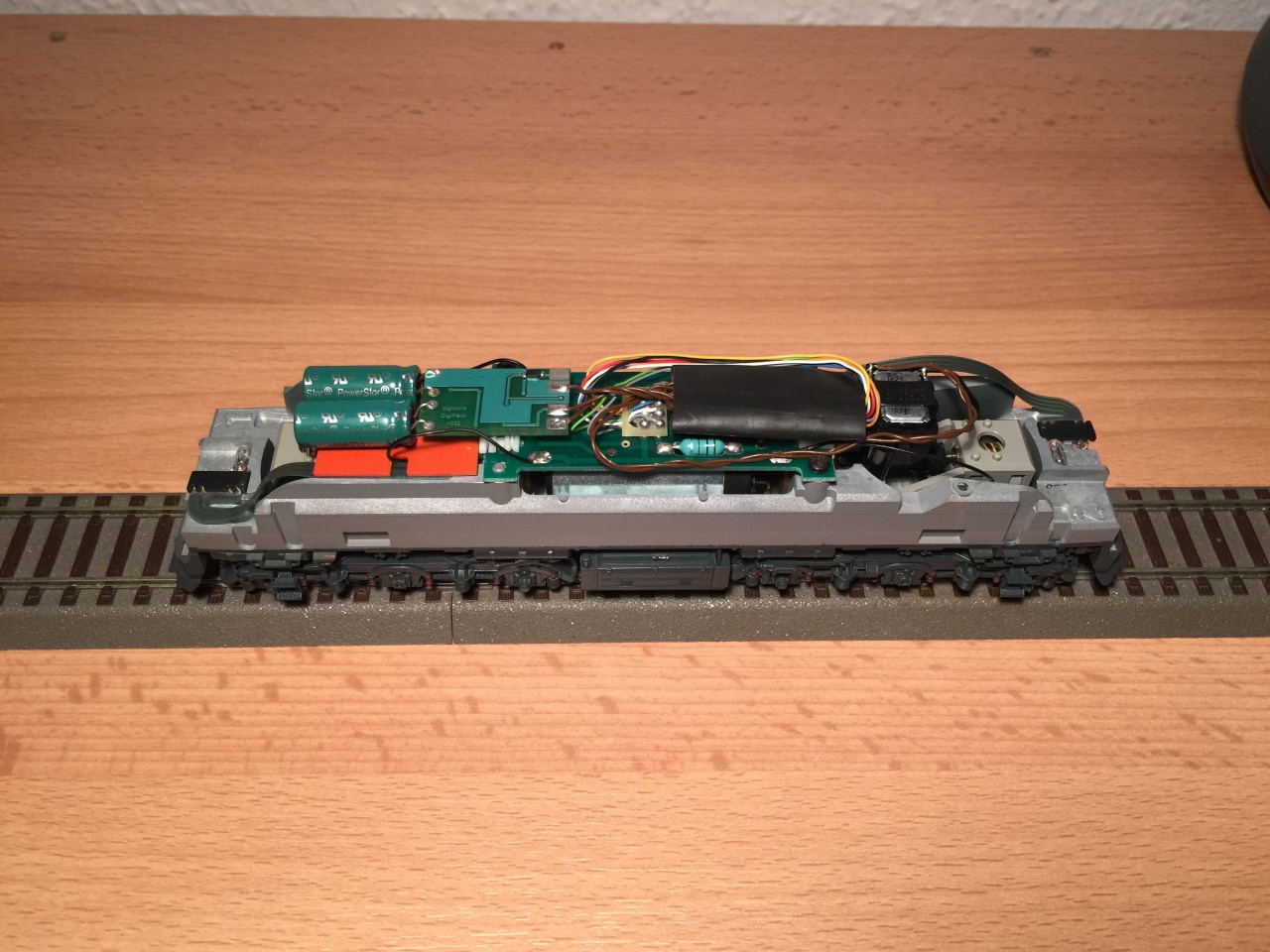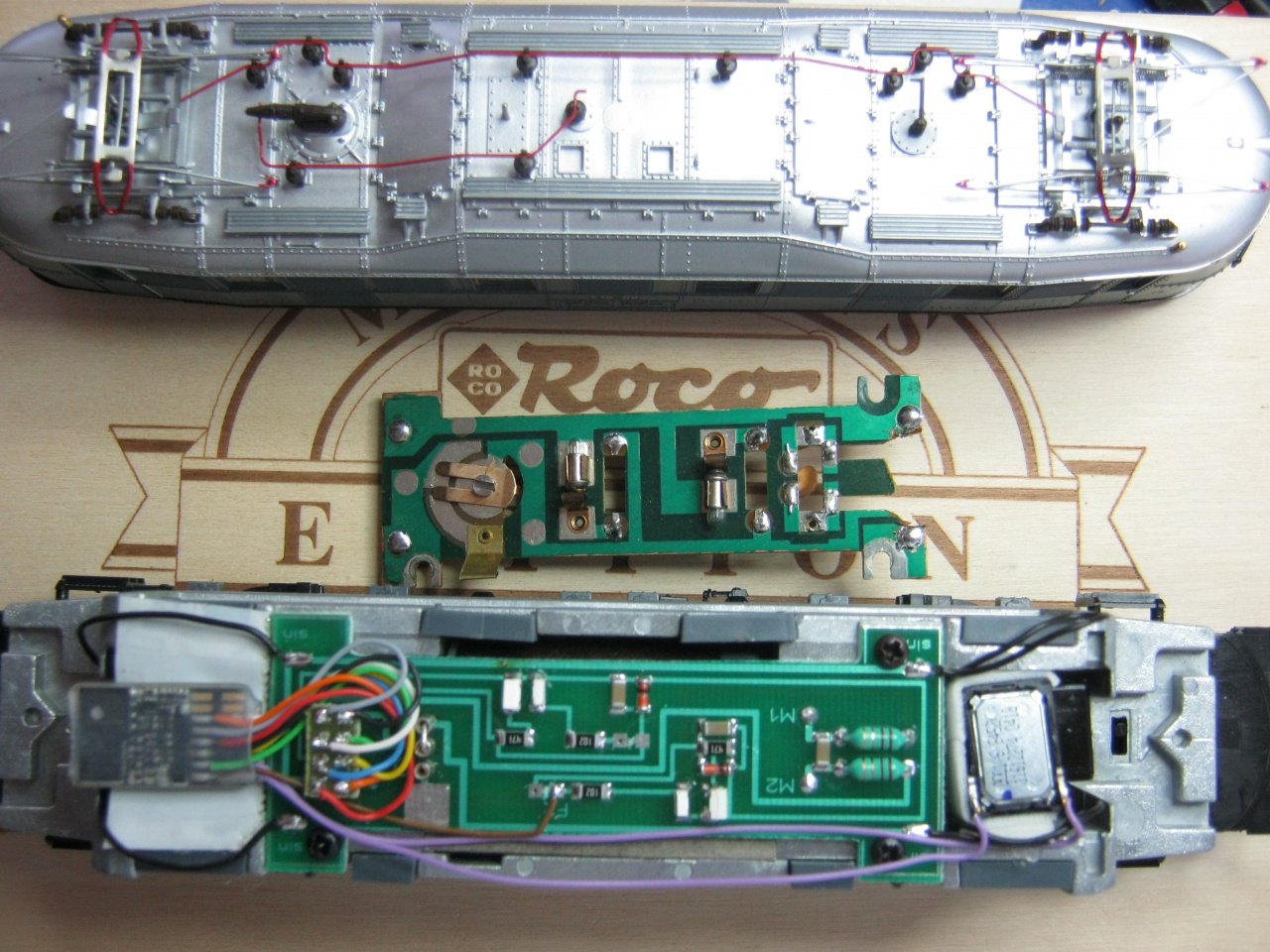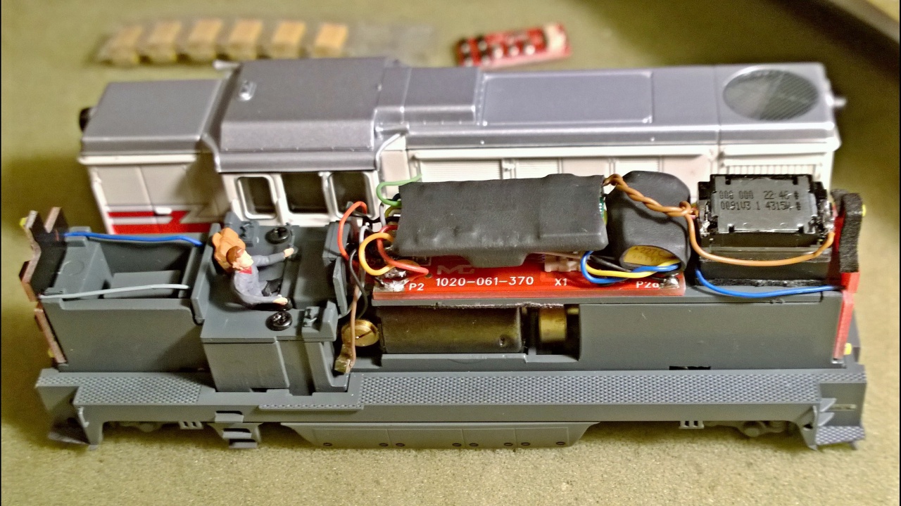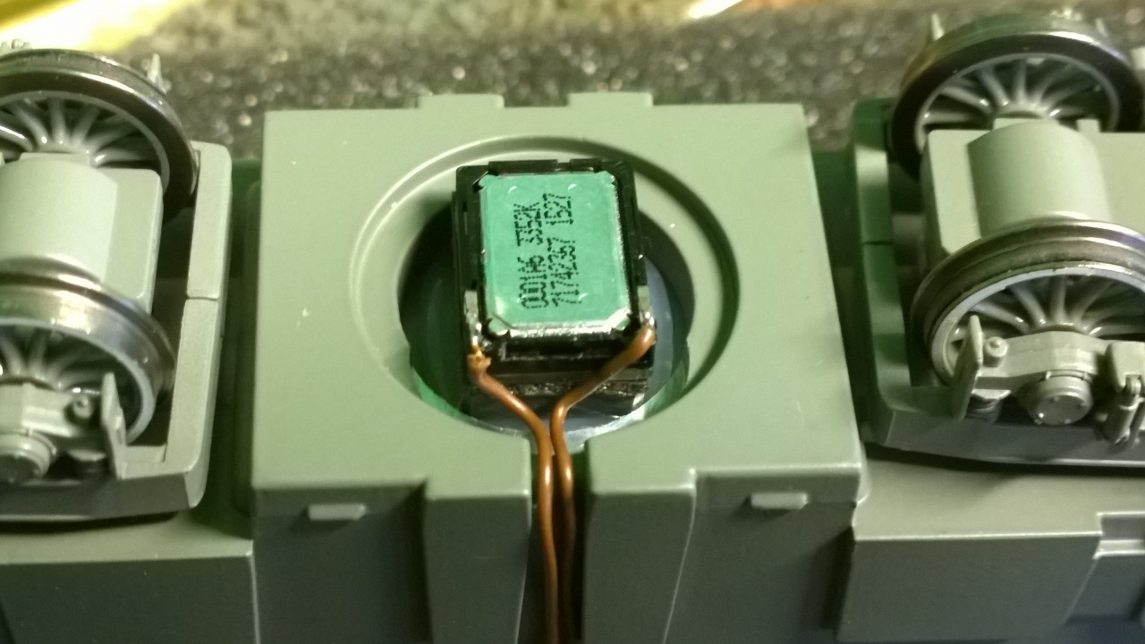 ESU loksound micro van benne. Azt nem nagy kunszt belerakni. A "motortér" alatt nem sok hely van hangszórónak. Mindegy hova teszed, csak ne a képen látható módon... |