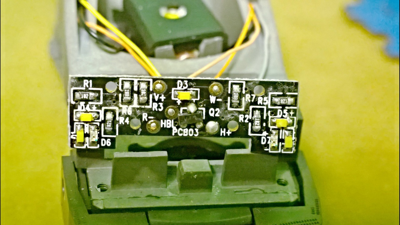 A panel az már régi, a ROCO BR151-hez lett kitalálva, de egy csomó régi ROCO gépbe is stimmel, többek között ebbe is. Előnye, hogy a zárfény külön kapcsolható így.