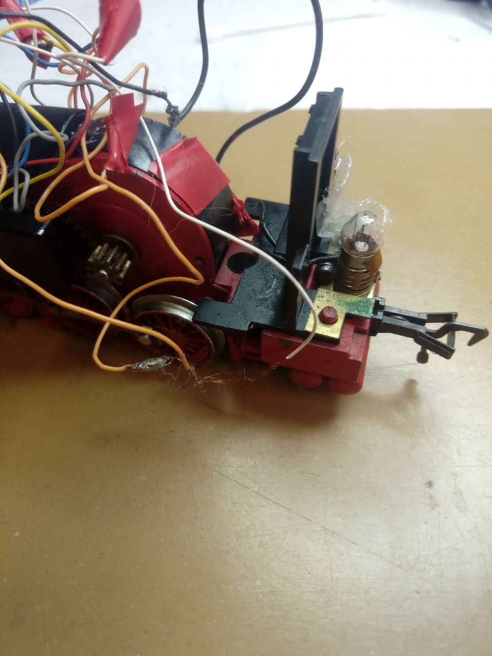 A végleges kialakítás kb. a jövő hónapban várható. A teljes belső elektronika (kivéve a dekódert) a műhely tervezése, és gyártása lesz. Eléggé szűk a hely a V43-ban, és a cél az, hogy a mozdony öntvényén semmilyen változtatást ne kelljen csinálni, a modell gyártási, illetve összeszerelési folyamatai ne nagyon változzanak meg.