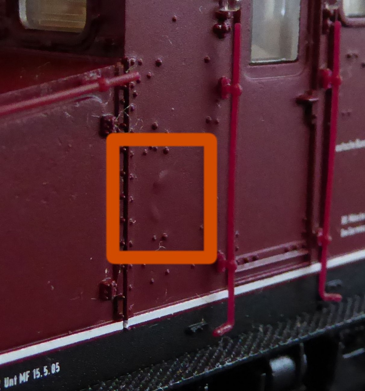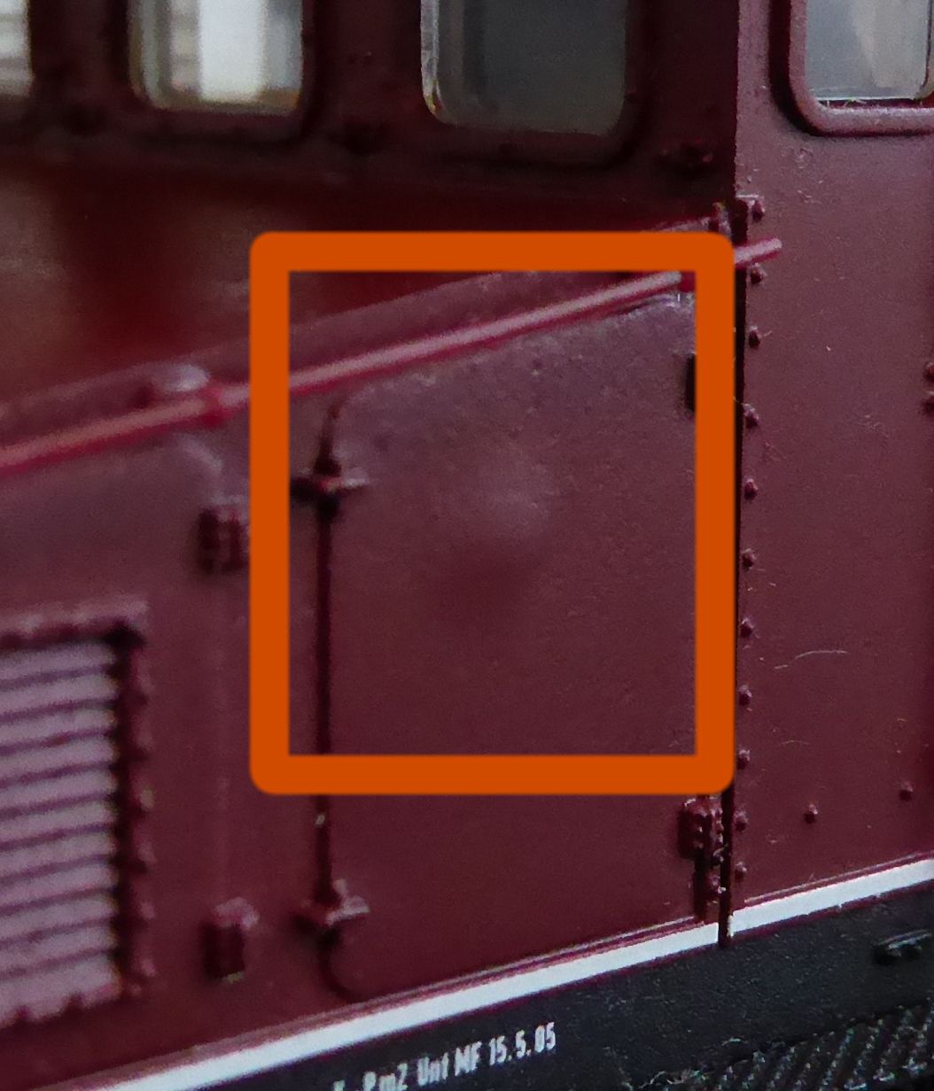 - Brawa 40032 Wüttembergi T3: Pontatlan megmunkálás miatt a rudazat beleér felül a kaszniba. Ez most egy papírdarabbal van megemelve, hogy ne verje szét saját magát, ha pályára kerülne. Vitrinmodell, sajnos a garancia lejárta után tűnt fel...