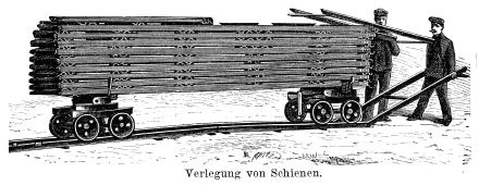 Ez az ún. "repülővágány" technológia. Amikor valami olyan helyre kellett eljuttatni egy járművet, ahol addig nem volt, és a későbbiekben sem lett rá szükség, hogy legyen kiépített vágányzat, akkor használták ezt a módszert. Persze nem csak sínszálakkal, hanem vágánymezőkkel. Hasonló módszer, mint ahogyan - állítólag - a piramisokat építették az egyiptomiak.