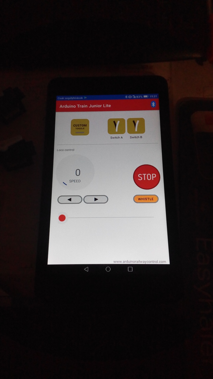 Egy 19V-os 3A-es tápról egyszerre tudja az összes szervót mozgatni, és közben ellát a terepasztalon 3 haladó mozdonyt is árammal a táp.