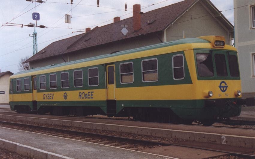 A fehér-piros csíkkal,már a második festés variáció volt,de ez sem tartott sokáig,mert átkerült a GySEV-hez,és ott ismét átfestették,