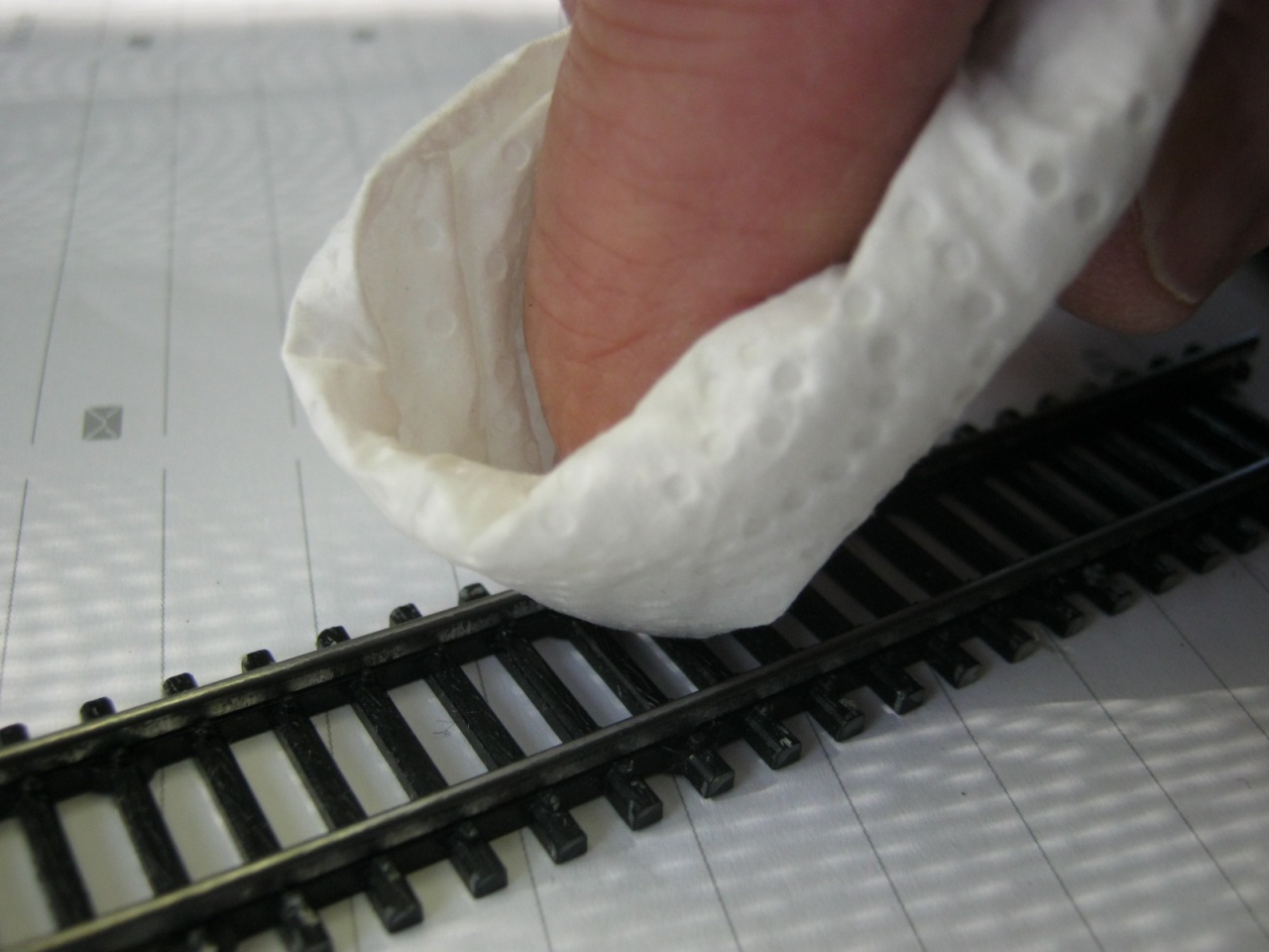 - Utána jöhet a foltbenzines* papírtörlővel a sínszálak letörölgetése.