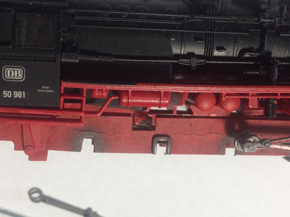 Elsőként itt is felhívnám a figyelmet arra, hogy a Tillig BR50/52-es típusú mozdonyai körében is jellemző a cinkpestis. A mozdony fém alvázát támadja meg az alattomos fémbetegség és azt meghajlítva, torzítva lehetetlenné teszi a kerekek futását és oldalirányú elmozdulását. A festés megrepedezik, az öntvény a legkisebb mechanikai hatásra törik, porlik.