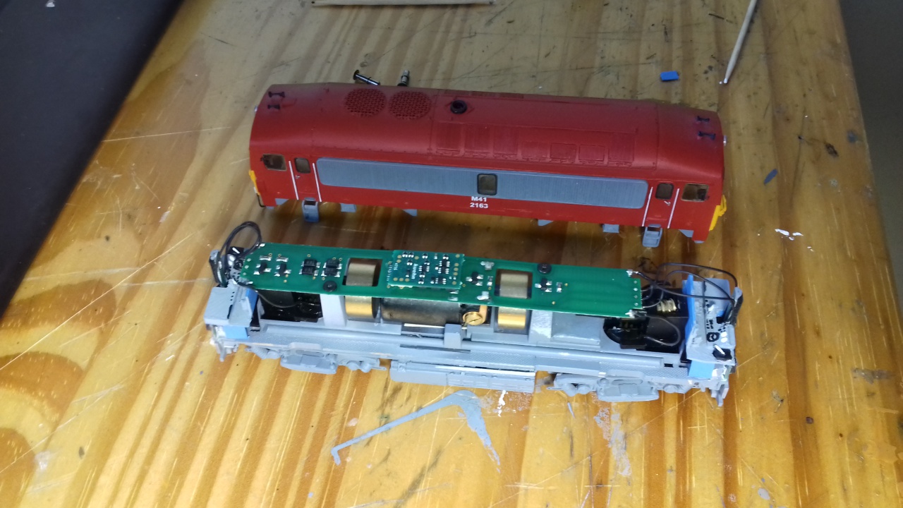 Újabb Csörgő feljavítás, ezúttal egy Digitools hangdekóder által okozott akadozás végett. A használati útmutatóban lévő kondenzátoros kapcsolást építettem bele a mozdonyba (220 uF kondival, mert nyagyobb nem fért bele), sajnos a helyhiány miatt az egyik oldali vezetőállast ki kellett szedni, de azóta akadozásnélkül megy a mozdony |