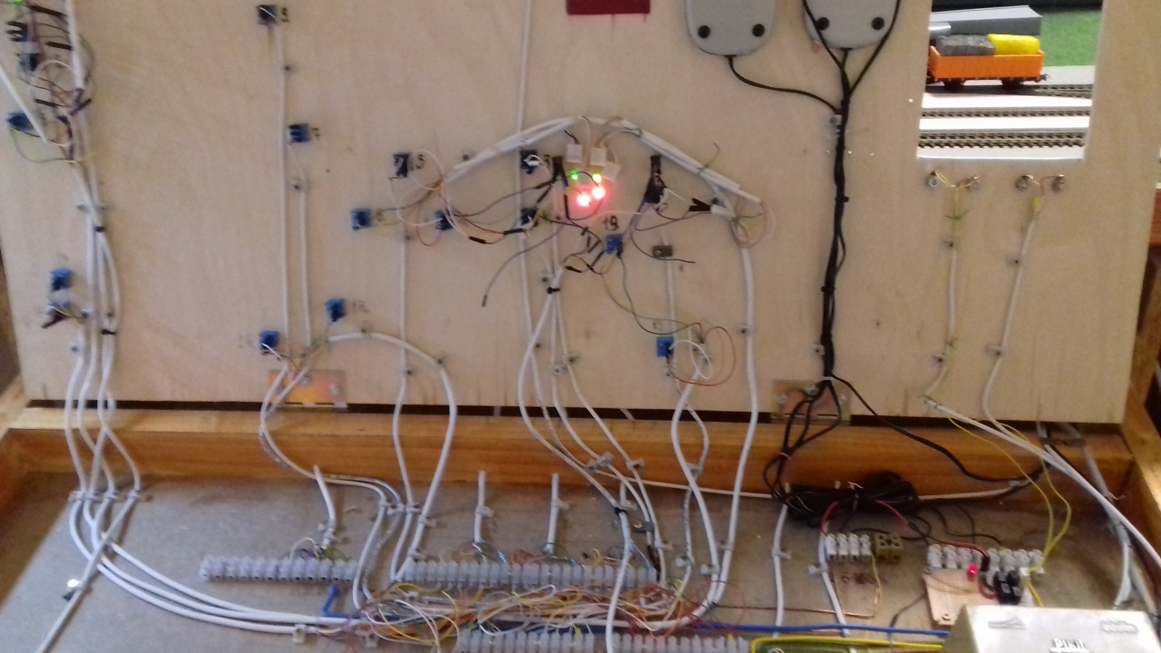 Szeretném eldicsekedni, hogy sikerült megoldanom a visszajelzéseket a váltóról. etwg ledes ötletét használtam fel, a váltókon átfolyó áram felhasználásával. Optikai csatolót tettem a váltó tekercsekre, azok reléket működtetnek. Most már megy a vezérlőpanel visszajelzés, a jelző állítás, ezekkel együtt le tudom kapcsolni az áramot a tilos állású jelzők előtti szakaszokon. A célom egy későbbi automatikus üzem, analóg rendszeren. Persze csak két színt használok a jelzőkhöz, és még minden jelzőhöz nem építettem ki, csak próbára készült egy panel. |