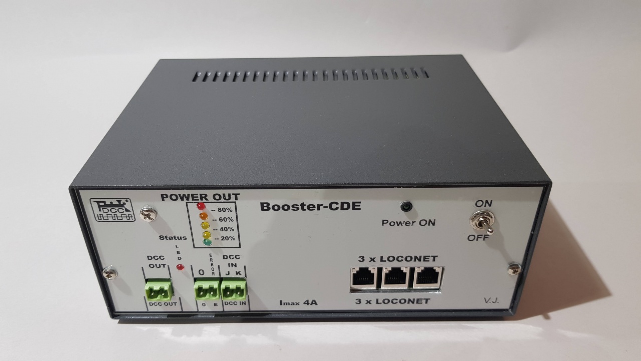 - A 3A-es boosteren alapuló megoldás, modulkiállításokon használom. Itt minden egyben van nem kell külön dobozokat összekötni. A DCC jel a Loconet csatlakozóról is 'levehető'. A sínfeszültség itt is beállítható. |