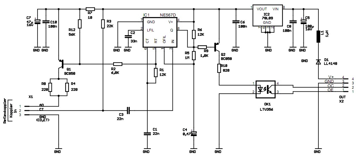 (Egy IC előállít modulált jelet, amit aztán ha visszakap a optotranyón keresztül, akkor lehúzza GND-re a kimenetét. A külső fény sem zavarja, ezek után csudajó dolgok tudnak történni - egy vasútmodell fordítókorongban szeretném használni pozicionáláshoz. A meglévő egyszerű kapcsolásom pontos, de sajnos a lámpafény már zavarni tudja...)