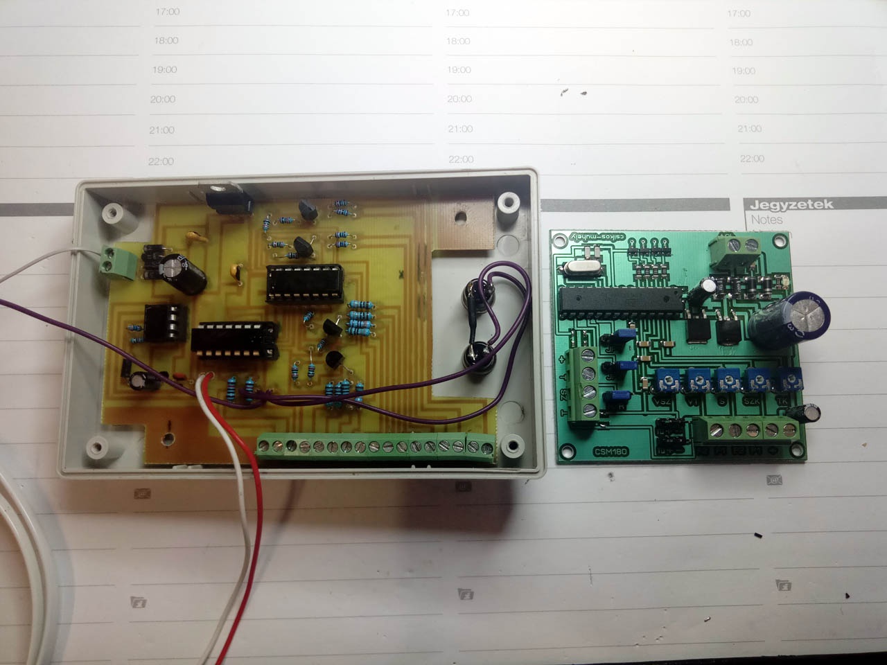 Szóval, adva van egy terepasztal, amin vezérelni kellene egy fénysorompóval ellátott közúti átkelőt, amin karos sorompók is működnek, szervo motorral vezérelve. A sorompó, és a fénysorompó működtetését Hall érzékelőkkel kellett megoldani. Nos, készült is hozzá egy elektronika, kis szépséghibával, hogy a szervot közvetlenül nem tud vezérelni. Oldjuk meg, ha lehet. Nos, a képeket látva a nagyobbik fiam egyszerűen "berágott", hogy ezzel ő nem. Még bottal sem piszkálná... Értem én, hogy spórolni kell, és a fotózás/maratás után a Positiv20 lakkot nem távolítjuk el, így a korrodálást meg lehet akadályozni, de könyörgöm! Ez így hogy néz ki???  Odahaza még csak-csak elmegy, de eladásra??!! Ne haragudj Diginewl kolléga, de Te saját magadnak sokkal igényesebb dolgokat követsz el, és nem vagy profi, ezzel foglalkozó szakember. Habár, a mellékelt képet nézve mehetnének Hozzád tanulni páran a "profik" közül...