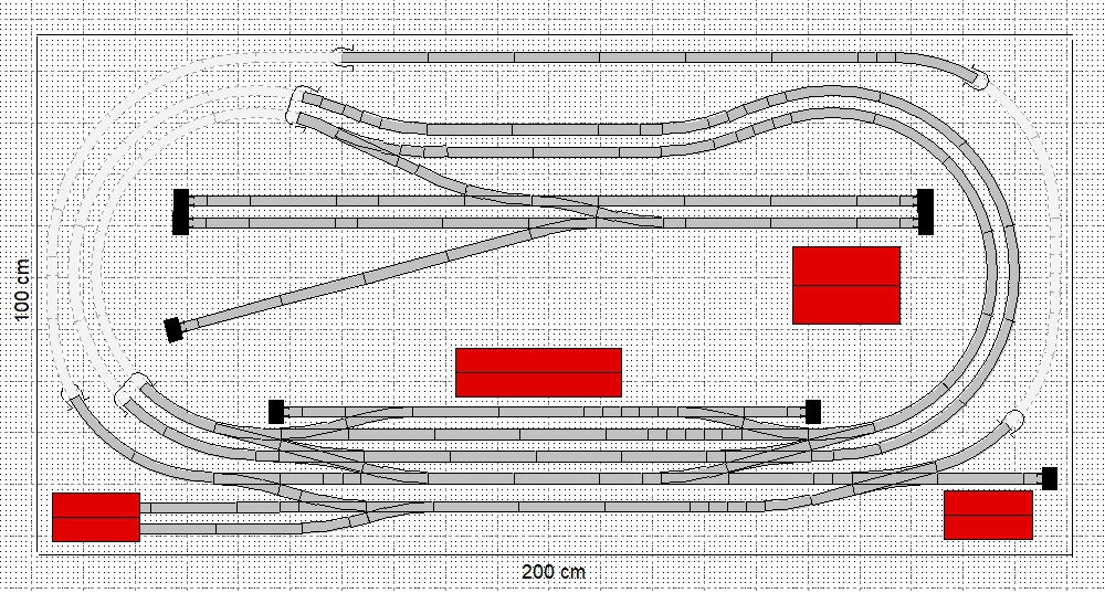 Minden intelmetek ellenére megpróbáloztam újrarajzolni a tervet spirállal és úgy tűnik a mutatvány egészen jól sikerült. A boldogság egészen egy napig tartott, mert rájöttem, hogy az egyik mozdonyunk nem fordul el 310mm rádiusz alatt. Hirtelen felindulásból átrajzoltam a tervet 310mm-es ívekkel a 267mm-esek helyett és nem meglepő módon az asztal mérete is szépen megnőtt. Ez persze helyhiány miatt nem fér be a lakásba, így maradt a totális átgondolás és újratervezés. Ebben nagy segítség volt, hogy időközben szereztem (vásároltam) néhány TT pályatervet és az egyik módosítása után született egy talán egészen jól használható. Igaz, hogy csak egy szintes, de van 3 független kör, amin a gyerek boldogan körözhet a 3 mozdonyunkkal és még szerelvényeket is lehet rajta pakolgatni. Kérlek nézzetek rá és véleményezzétek, hogy szerintetek rendben van-e a pálya vonalvezetése. Köszi előre is! |