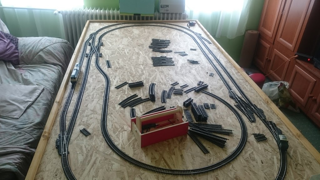 A második képen a próbavonat van. Ha ez a szerelvény, pláne az a vacak Juef hálókocsi tolva-húzva gond nélkül elfut, és az ősi PIKO BR89-es akadozás nélkül teszi a dolgát, akkor a pálya rendben van. |