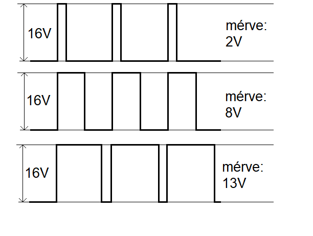 A kimeneten mindig a maximális feszültség lesz, de az átlagfeszültség változik a kitöltési tényező szerint.