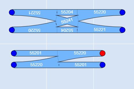 Közben még azon gondolkodtam, hogy mennyire lehet ezeket a távokat csökkenti, hogy a párhuzamos 61,9mm lemenjen erre az 55mm-re. Lehet ez érné meg a legjobban még mindig, akár a kis 7.5 fokos ívekkel kisakkozni a szűkítést oda (vagy a flexibilis sínből levágni egy kisebb szakaszt amivel ez pl 100mm-en csökkenthető), gondolom a kisebb táv nem okozna gondot ha egymással szembe közlekedik két szerelvény, illetve akár az egyeneseknek is van kis hajlása amivel szűkíthetek a távolságon. A kérdés még, hogy egy digitális rendszerben ez a Pilz váltó mennyire stabil működésű a találkozási pontok miatt? |