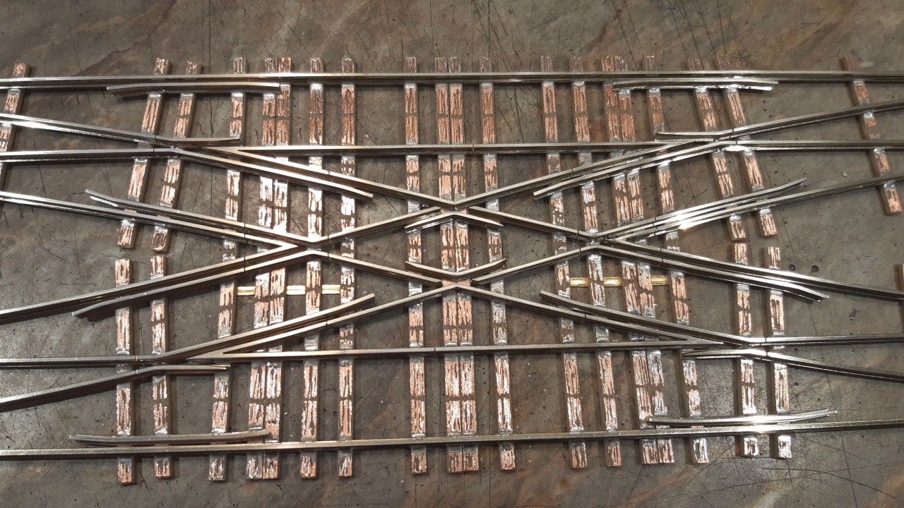 Nem lehet kész darabok összevágásával megoldani, mert az átszelés 30 fokos, viszont a kitérő a szívdarab után (ahol el kéne vágni) még csak 12 fokos. A régi Pilz hózentrógernél a vágánytengelyek távolsága 55mm, tehát ez sem játszik, ha 62mm-t akarsz. Sajnos ezt meg kell építened, ha pont ilyet akarsz!  |