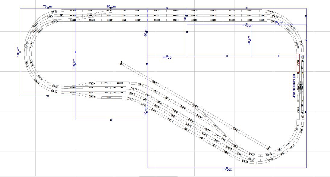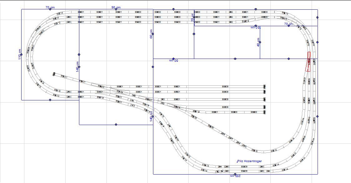 Szerintetek ez mennyire lenne működőképes és kivitelezhető? A sínanyag kétharmada már megvan. 3 váltót, csomó összekötősínt és egyeneseket még kellene vásárolnom. Sajna nem bízok magamban még annyira, hogy azonos méretű kis G62 vagy G119 síneket vágjak le a flexibilisből amivel jóval olcsóbbra hozhatnám ki ezt a részt. Valamint később még a digitális központot cserélném le. Ami esetleg kérdéses lehet, hogy az idén vásárolt Pilz hózentrógert is fel szeretném használni, viszont annak 55mm a tengelytávolsága 61.9mm helyett, de két darab R2 7.5°-s ívnek a segítségével, S kanyarként, pont le tudom szűkíteni a tengelytávolságot.