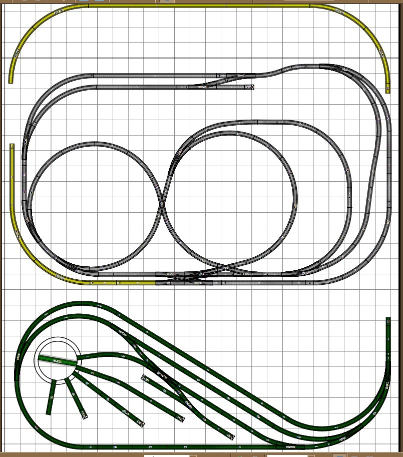 Az elmúlt 10-15 évben arról olvastam itt, és másutt is, hogy a 3%-nál meredekebb emelkedők kerülendők. Mivel az előző pályámnál is volt emelkedő, ott 2,4%-os volt, azon gond nélkül mentek fel a tapadógyűrű nélküli mozdonyok is - jónéhány kocsival. Ez 2,5%-os lesz, talán nem akkora a változás. A sárga sín az emelkedős rész. Kijön az, csak sokat kellett rajta gondolkodnom.