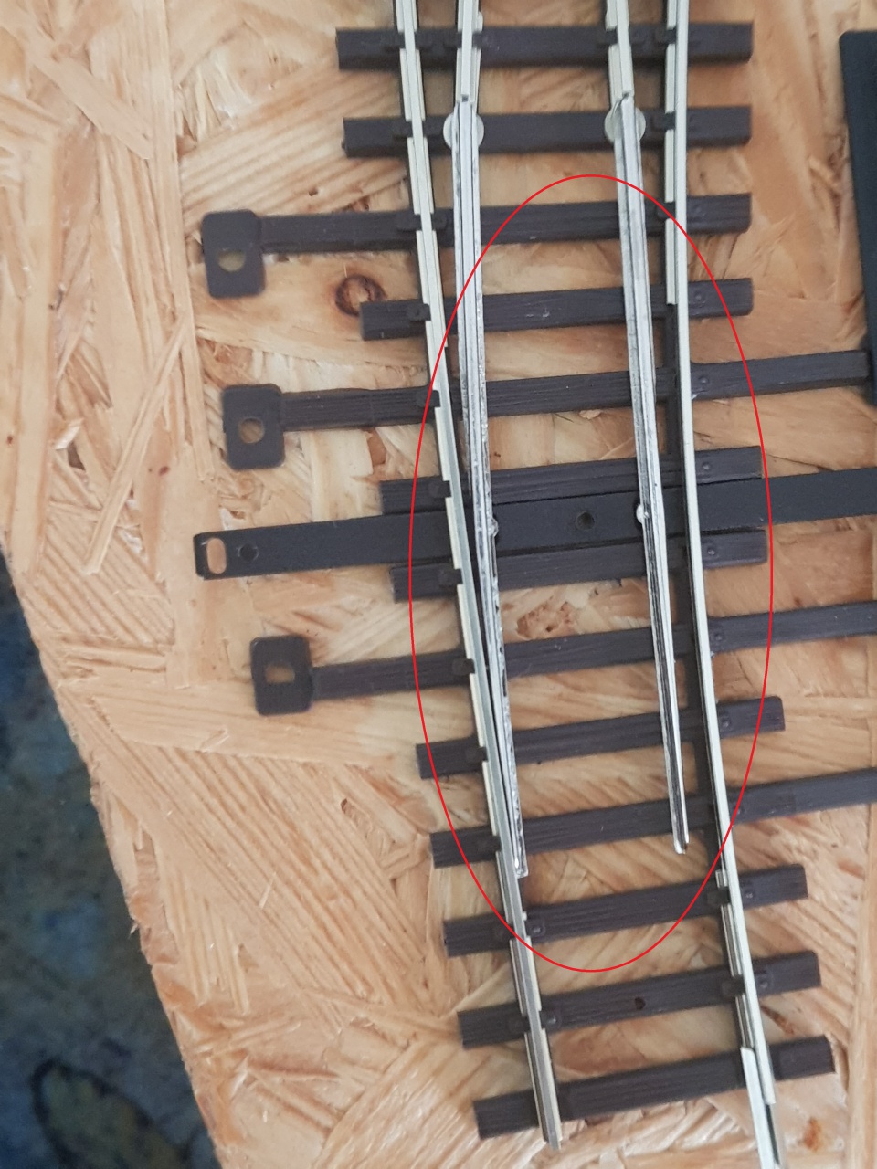 Vettem egy Tillig standard íves váltót, állítóművel teszteléshez és azon meg máshol keletkezik egy pici rövidzárlat. Bekarikáztam a képen hogy szintén kitérő állásban azon a részen valahol rövidzárlat keletkezik amikor áthalad rajta a Nohab, viszont ez egy kisebb(?) rövidzárlat, mert csak egy kicsit szikrázik, de a vezérlést nem csapja le. Már ötletem sincs hogy mi okozhatja. |