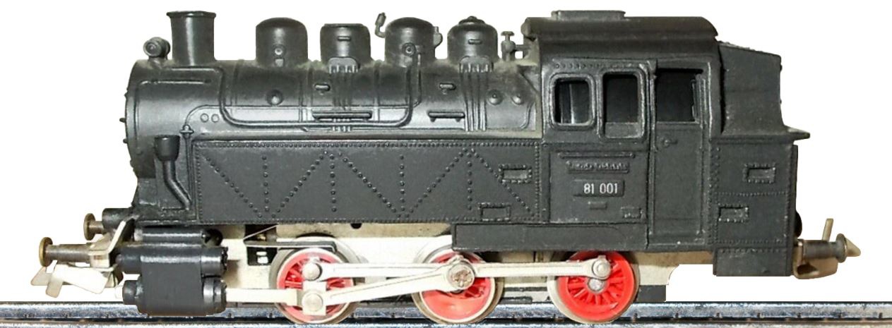 Zeuke 545/78 3-tengelyes fantáziamodell 81 001 pályaszámmal, a fotón nehezen olvasható, Deutsche Reichsbahn dombornyomással a pályaszám felett.