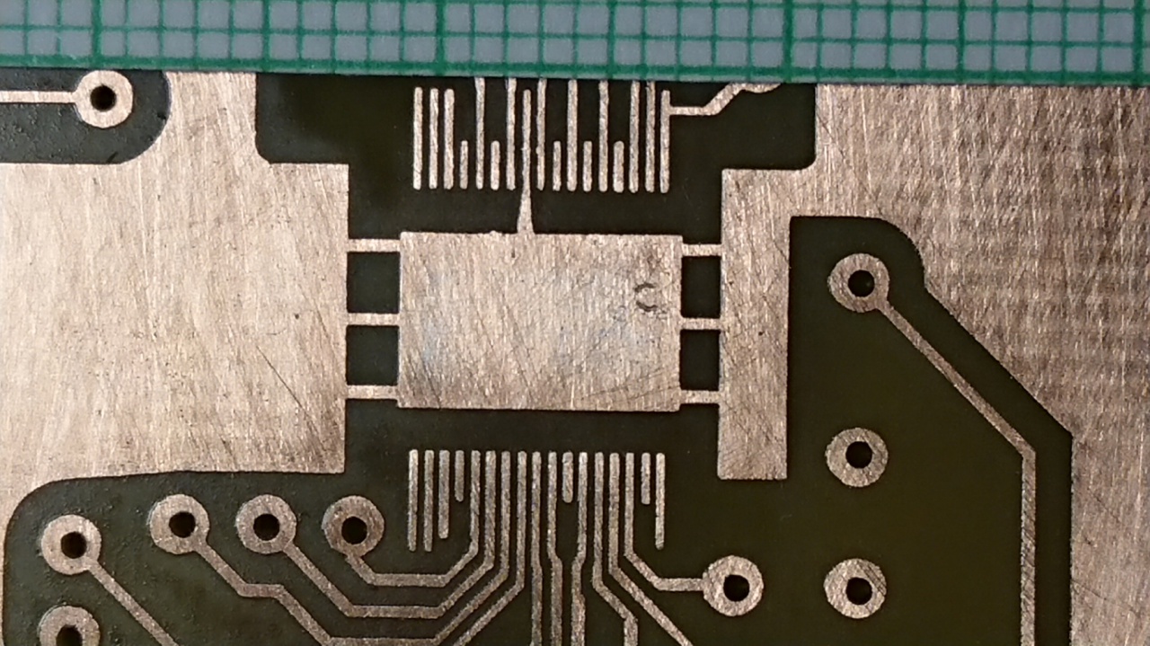 Ugyanis a rézmaratás használata esetén ez a technológia nem eléggé pontos, lévén 35mikron "vastagságú" rézfólia lemarására lett kitalálva. Ahhoz, hogy egy paszta maszk kellően stabil legyen, ennek a sokszorosára van szükség, legalább 0,3-0,5mm-re. Mindenképpen alá fog maródni, és a paszta széle nem lesz egyenletes. Még egy relatíve könnyen forrasztható SMD SOIC8-as lábkiosztás esetén is összefolyhat majd a melegítéskor.