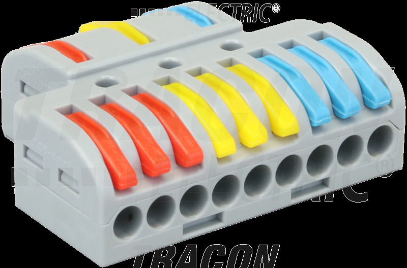 Hazai piacon találtam két érdekes vezeték összekötőt, illetve szétosztót. Az első fényképen egy toldó látható. Nagyon praktikus, 1 -12 pólusú kivitelben kapható, a nagyobbak alaplemezre is közvetlenül csavarozhatók. A második képen egy 3 pólusú szétosztó látható. Ez különböző variációkban kapható (1, vagy 2, vagy 3 bemenet, 2, vagy 3 kimenet. Beszéltem a forgalmazó képviselőjével és a gyakorlatban kipróbálták amit egyszer Jenő felvetett, hogy ezekbe akár több, kisebb keresztmetszetű vezeték is köthető pólusonként. Ezek használata nagymértékben megkönnyíti az asztal alatti, hanyatt fekvős vezetékbekötéseket is. Én a közeljövőben tervezem kipróbálni ezeket. |