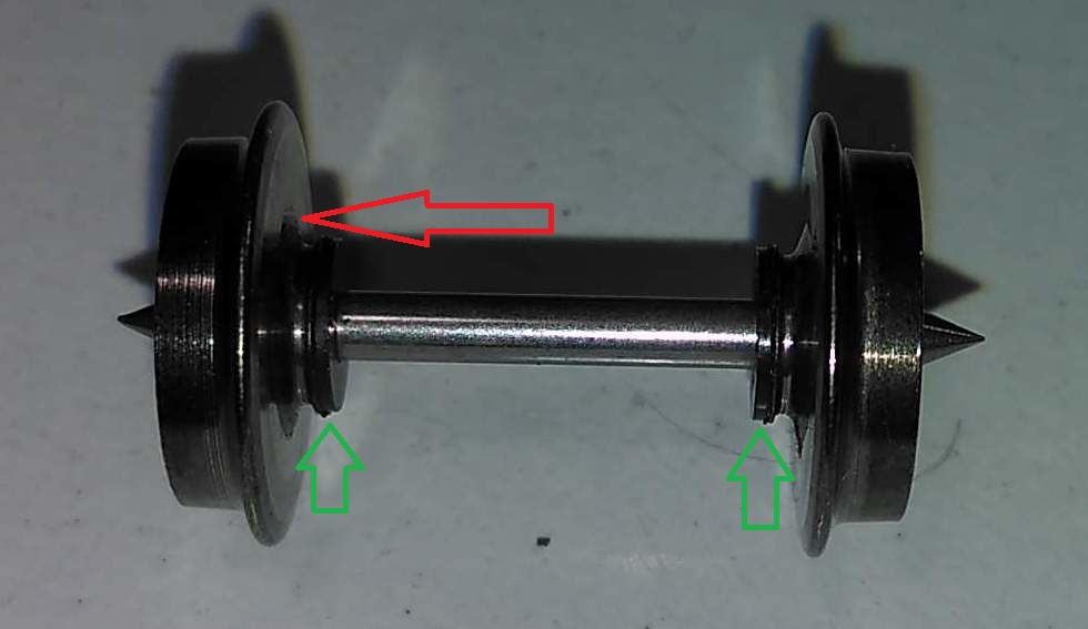 Ez ott jó ahol eredetileg nincs áramszedés a kocsiban. Mivel volt ilyenem, azért próbálkoztam ezzel is, úgy hogy átfedtem a szigetelő réteget a tengely, és a kerék között. Viszont a PEHO-hoz normális kerékfelfüggesztés kell, a Tillig kocsiban ezek lötyögnek.