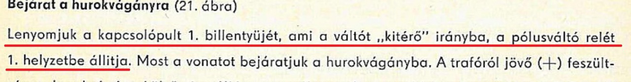 Idézet: „ Ehhez az kellene, hogy a váltóval együtt egy relét is átkapcsolj, és ez relé adja majd az áramot a szakaszolt állomási sínekbe.”