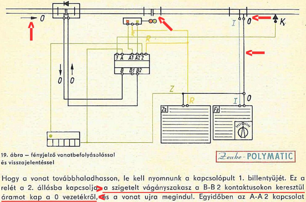 Idézet: „ Ehhez az kellene, hogy a váltóval együtt egy relét is átkapcsolj, és ez relé adja majd az áramot a szakaszolt állomási sínekbe.”